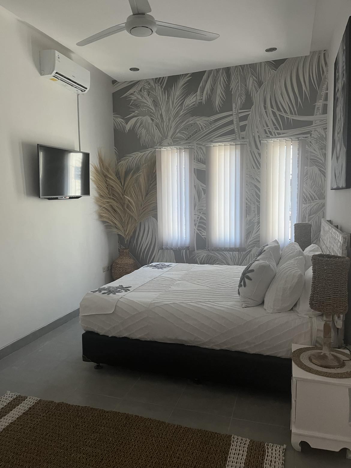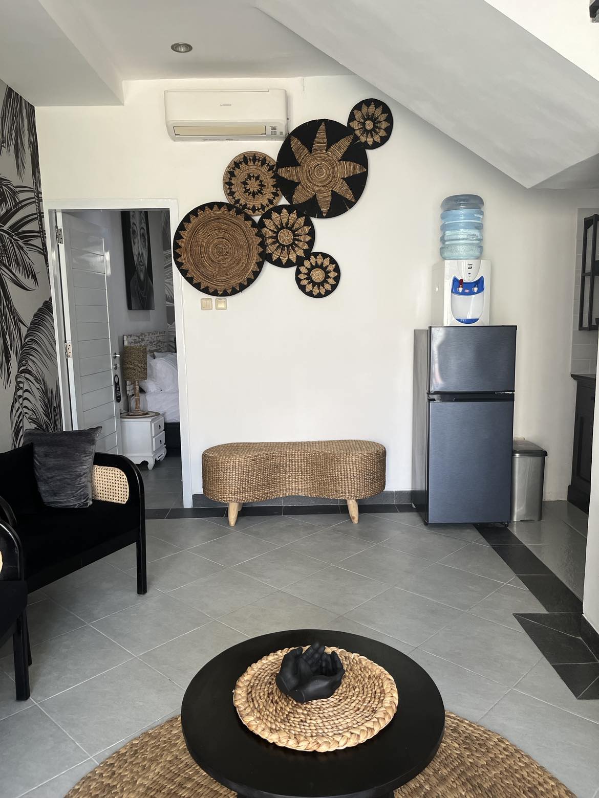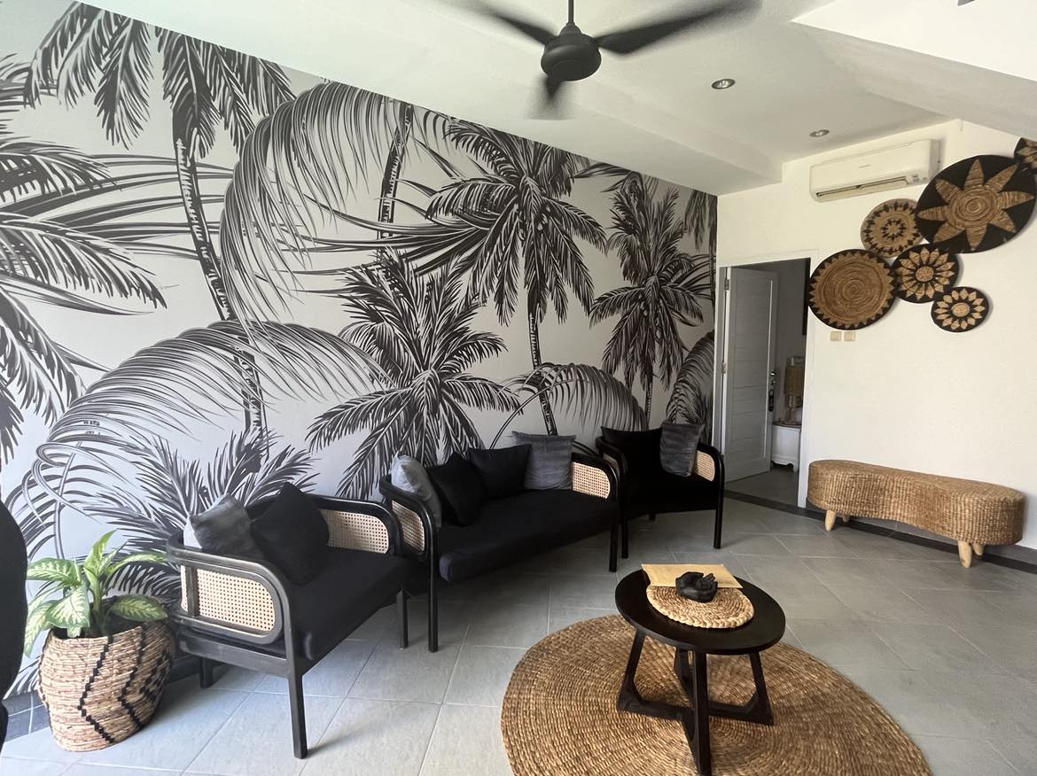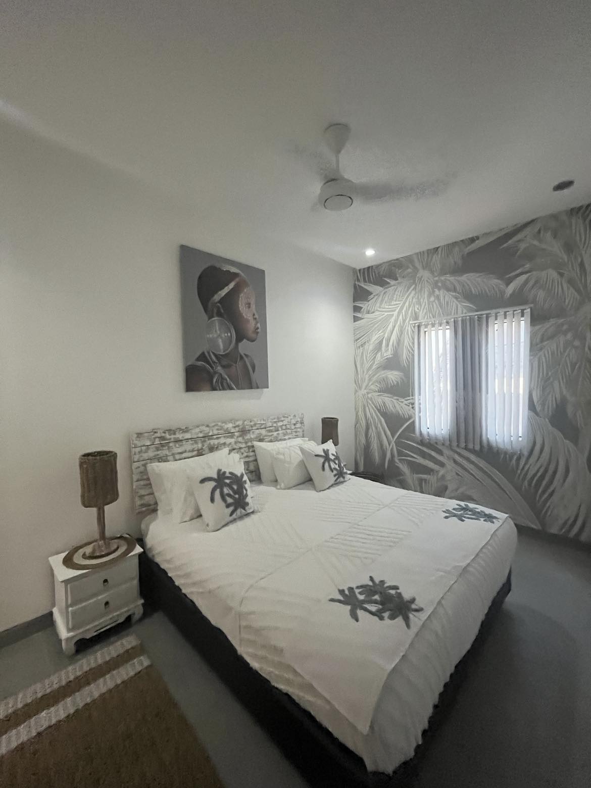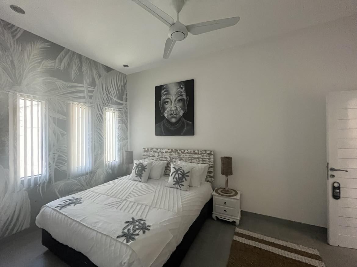 This villa has a had a full renovation and now features on trend décor in a black/grey & white theme. Air Cons, TV’s/Safety boxes in all bedrooms, smaller living room space which is comfortable and relaxing with the direct pool access. Kitchenette with microwave & cooktop, high speed WIFI, Bathroom amenities provided. The pool gets sun for nearly the whole day, with seating a bean bags for lounging.